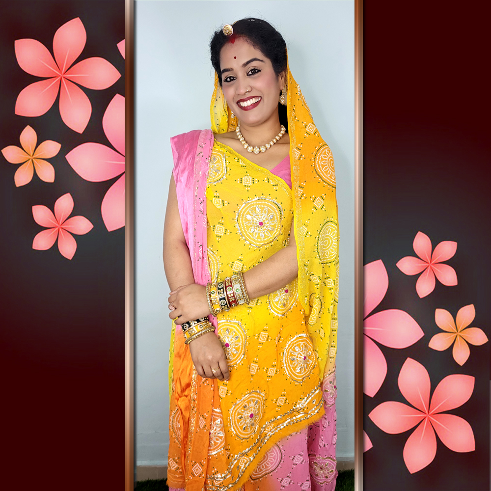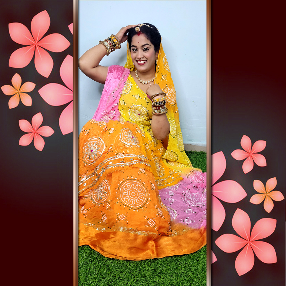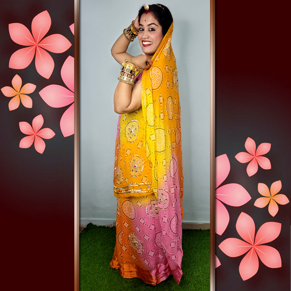 Georgette Viscose Gota Sikiya Hand Work Multi Dye Saree